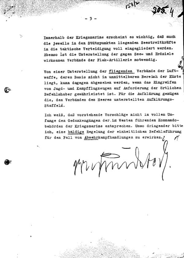 The file contains a comprehensive set of wartime directives, memoranda, situation reports, and annexes issued by Field Marshal Gerd von Rundstedt and his staff between 1942 and 1944. The documents trace the planning, organisation, and execution of Germany’s coastal defences from the North Sea to the Mediterranean.