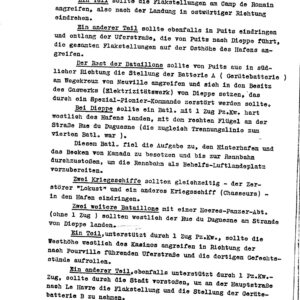 Includes analysis taken from captured Allied orders describing the intended objectives of the Canadian-led force, including unit compositions and landing plans.