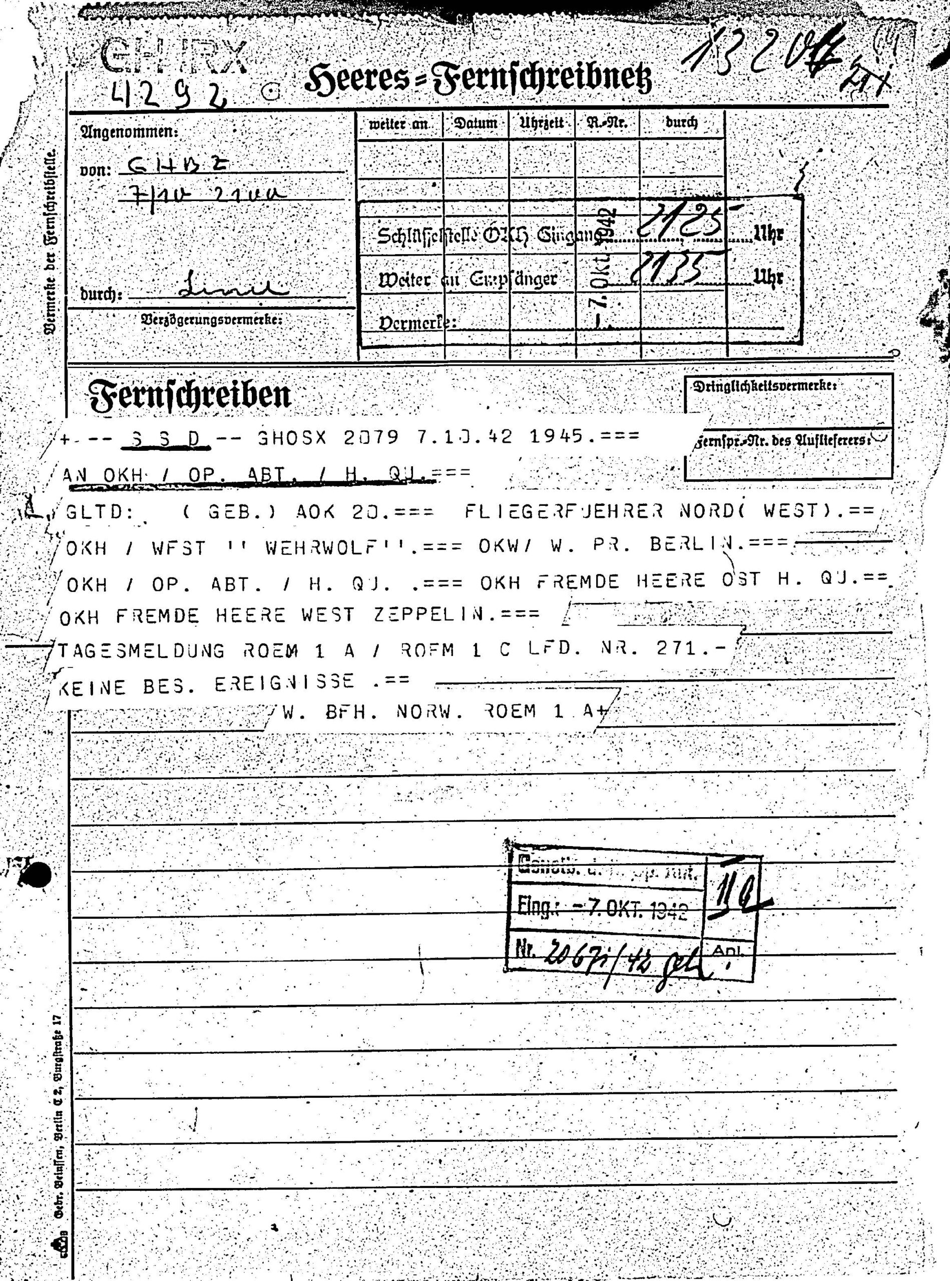 - Teletyped daily or near-daily situation reports from AOK Norwegen / Wehrmachtbefehlshaber Norwegen to OKH and the Wehrmacht leadership.