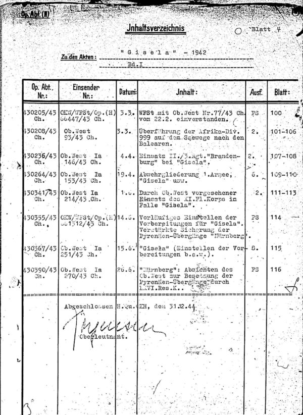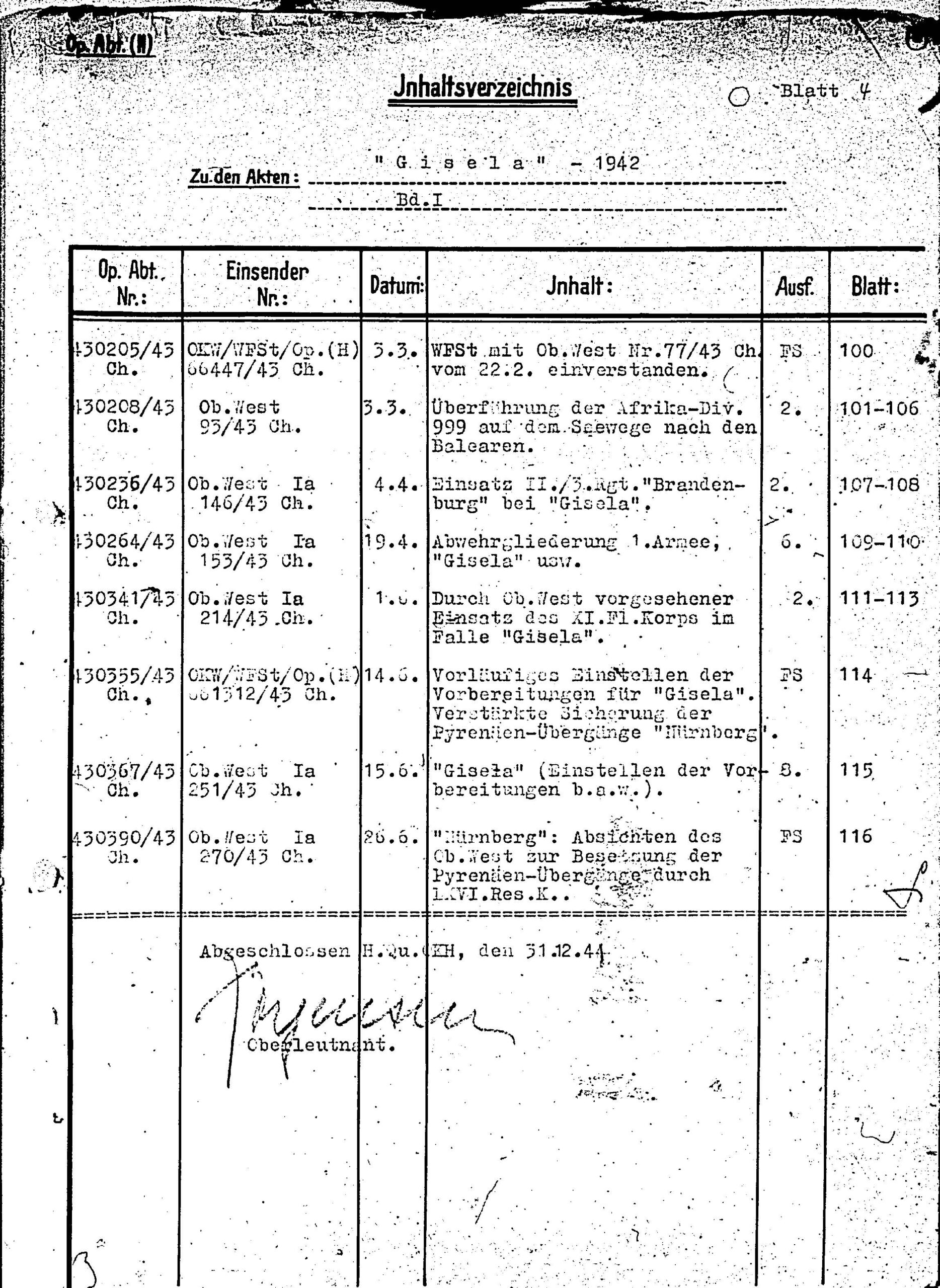 - Detailed reconnaissance and assault study for the projected German attack on Gibraltar via Spanish territory, under the codename “Felix”.
